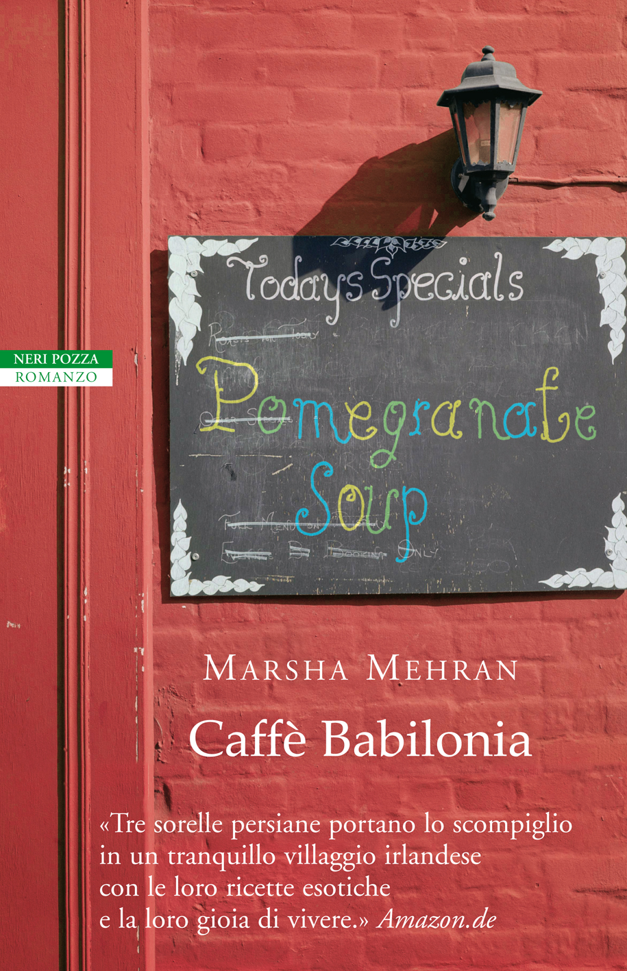 Caffè Babilonia è la storia delle tre sorelle Marjan, Bahar e Layla Aminpour protagoniste del romanzo che ha inizio proprio a seguito della loro fuga dalla violenza di Teheran e si trasferiscono prima a Londra e poi in Irlanda, dove aprono un caffè che sarà capace di stravolgere le loro vite e quelle degli abitanti del posto, che pian piano verranno catturati dalla magia delle ricette e anche dal fascino delle tre sorelle. Marjan Aminpour, la primogenita, è nata in Persia dove guidata dalle mani gentili di Babà Pirooz, il vecchio giardiniere barbuto che curava le terre della sua casa d’infanzia, ha imparato fin da bambina a coltivare la maggiorana e l’angelica dorata. Ora Marjan è a Ballinacroagh, in Irlanda, col cardamomo e l’acqua di rose, il basmati, il dragoncello e la santoreggia, prepara le sue speziate ricette persiane al Caffè Babilonia, il locale che, assieme alle sorelle, ha ricavato dall’ex panetteria di Estelle Delmonico, la vedova di un fornaio italiano, e dove la gente di Ballinacroagh accorre ogni giorno numerosa, attratta dalle pareti vermiglie, dalle zuppe di melagrana e dal samovar del tè sempre pronto. Marjan potrebbe finalmente godere dei suoi meritati piccoli trionfi se un perfido scherzo del destino: la sorellina si è innamorata, ricambiata, di Malachy McGuire, uno dei figli di Thomas McGuire, il boss del villaggio che possiede un’infinità di pub e ambirebbe volentieri a mettere le mani sul locale. In Caffè Babilonia il cibo e la magia evocativa che una ricetta sa trasmettere sono protagonisti tanto quanto le tre sorelle, ogni capitolo è accompagnato da una ricetta completa di ingredienti, che in appendice al libro sono anche corredati di suggerimenti su come sostituirli con altri meno esotici. Delizioso romanzo che con humour e delicatezza tratta dei conflitti culturali che caratterizzano il nostro tempo e l’effetto che, la compianta Marsha Mehran, provoca è proprio quello di aprirsi alla scoperta di un luogo, di nuovi profumi e ritrovate sensazioni e la sorpresa più grande per il lettore sarà constatare che, almeno una volta, ci sarà già stato ma, fino alla conclusione del libro, lo aveva dato per scontato. Una piccola perla, questo romanzo, che una volta chiuso sa stampare un sorriso leggero sulle labbra!
