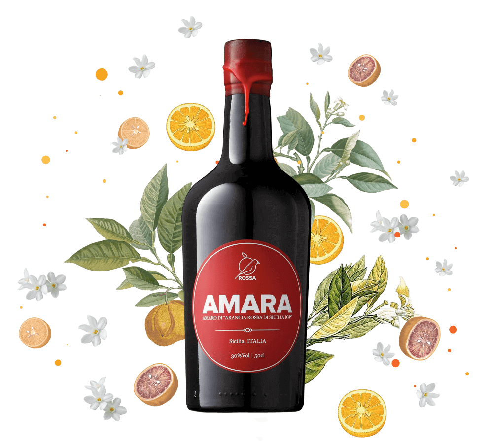 Nasce alle pendici dell’Etna, il vulcano attivo più alto d’Europa, ettari di agrumeti, orgoglio dell’antica tradizione contadina. E’ con queste premesse che, grazie alla natura del terreno e alla forte escursione termica, crescono le Arance Rosse di Sicilia IGP dalle cui scorse nasce l’amaro Amara. Prodotto in piccole quantità, in modo artigianale, attraverso sette infusioni delle scorze della migliore arancia rossa di Sicilia Igp, con aggiunta di acqua di fonte, un’infusione di erbe aromatiche dalla formula e dosaggio segreti ed infine lo zucchero. Liquore dalle note amaricanti Amara è ideale sia come aperitivo servito con ghiaccio che come digestivo proposto liscio e servito freddo. Perfetto per la miscelazione, ingrediente speciale per ricette di cocktail gustosi dallo stile mediterraneo come l’Amaragin.